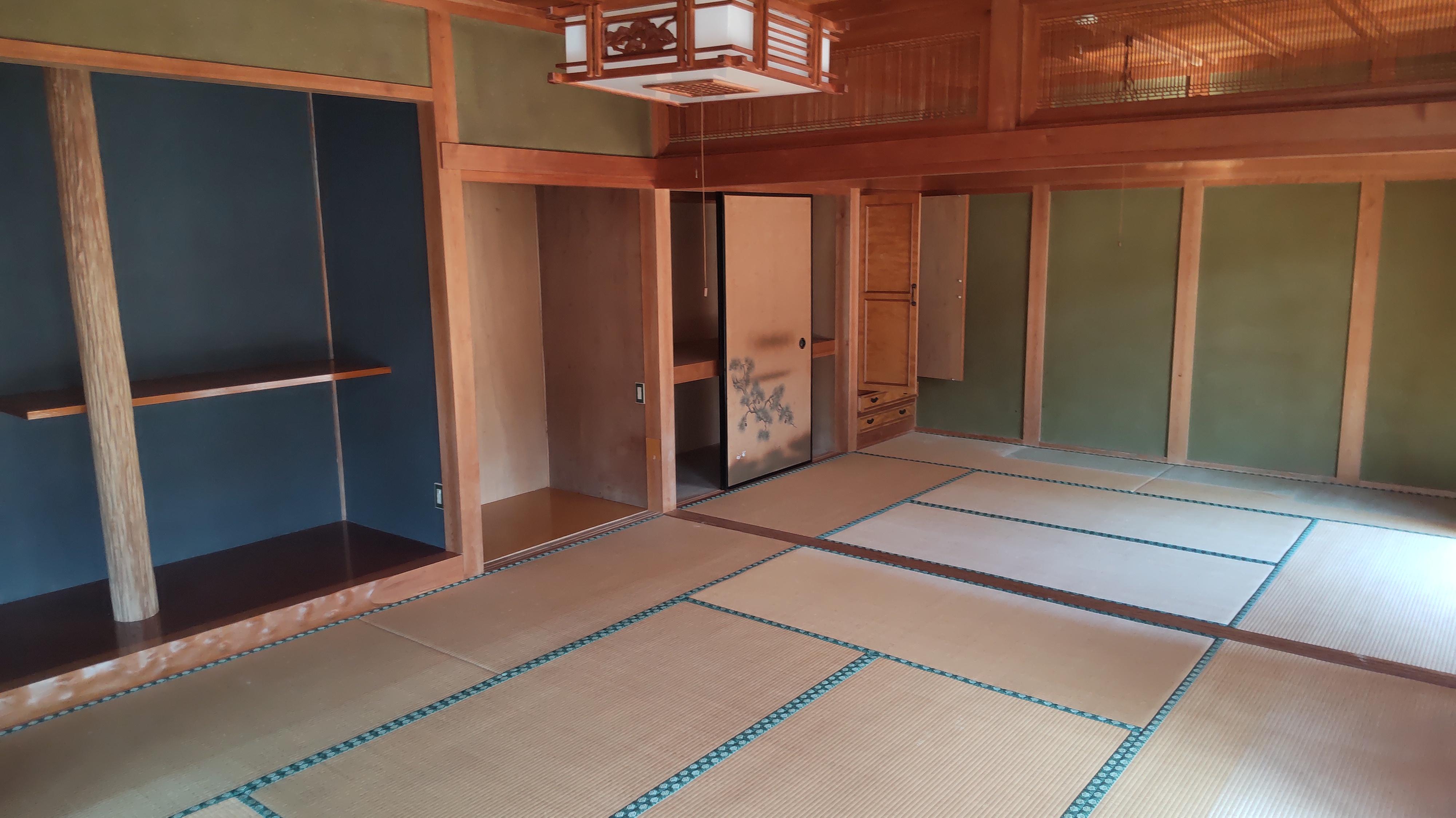 - 和室6畳×2・8畳x1、洋室約10畳x1・約3畳x1、台所約6畳、風呂、トイレ(大・小2)、縁側