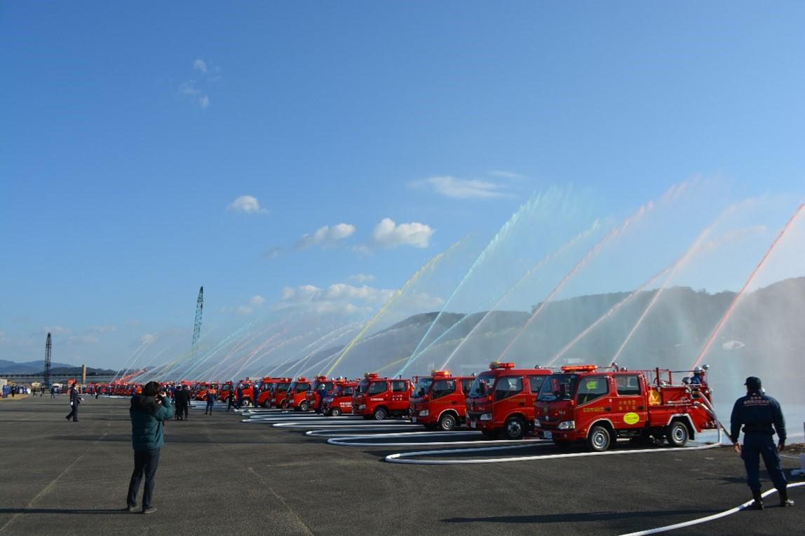 | 内 容 | 1 分列行進 2 式典 (1) 和太鼓演奏 9時10分ごろ (2) 一斉放水 9時30分ごろ (3) 表彰 ※時間は進行状況で前後する可能性があります。 |