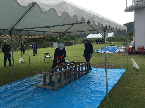 今年度、「チェーンソー」や「エンジンカッター」、「AED」が各分団に配備されることに伴い、令和2年9月13日、串間市消防本部において「令和2年度串間市消防団救助資機材取扱い訓練」を実施しました。